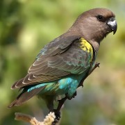 青铜翅鹦鹉野外饮食主要以水果、坚果、浆果、种子以及树上的花朵为食。 说话能力不佳。饲养方法和饮食 水果、壳类种子、向日葵、绿色食物等。居住要选用坚固的金属而有足够空间以供活动的乌笼。