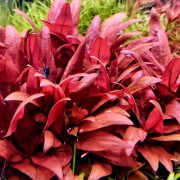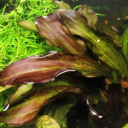 花豹象耳( Echinodorus schlueteri 'leopard' )与红香瓜草(Echinodorus barthii)的杂交品种,1995年诞生于德国水草专家汉斯·巴尔特的水草养殖场中。整片叶子上都混杂着红褐色的斑纹,形态十分优美,是红色系斑纹水草中的名品,至今仍备受青睐。与小熊皇冠草一样,是非常适合初学者的皇冠草改良品种。养殖难度不大,不过,保证强光并注意施肥可以让新叶更容易发色,红色会更美。同一亲本的杂交品种会出现很多不同形态。