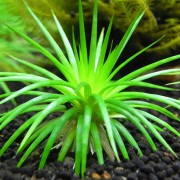 双子叶植物,挺水性水草。水上草与水中草不同型,水上草的叶片较肥厚,狭披针形三轮生叶,叶端尖细,绿色,叶缘有细锯齿状,在叶腋会长出花梗,开出粉紫色的漏斗形花朵,每朵有5片花萼。茎上常有茸毛。成长快速的高茎植物,适合群植于深水族箱。叶轮可达15公分长,但一般较小,每根茎上长出18~22片完全分离的叶子。水中草的叶片为羽状叶,从主干辐射而出,上小下大似宝塔形18~22枚轮生,叶色黄绿,以平面伸展的方式由茎向外扩散生长。它新长出来的水中叶也可能成为类似水上叶的狭披针形叶,或者为半狭披针形叶,即茎基部上仍维持羽状叶的形态,但茎顶部欲长出狭披针形叶。这种同在一株水草上表现出两种完全不同的水中叶形,在其他水草中相当罕见。喜欢软水,条件适合下成长很快需要时常打头,很美丽的水草。
