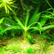 长茎箦膜的分布范围广,形态变化多。目前市场上流通的主要为有茎的类型,茎会一直伸长,叶长2.5~5cm,宽2mm,多分枝。叶色由绿色至绿中带红,颜色多样,有些叶片的红色非常浓郁。与日本箦藻关系密切,二者的区别在于种子表面有无凸起,有凸起的为长茎箦藻。喜弱酸性水质,养殖时最好使用水草泥,并添加CO2。丛生时的姿态非常优美。