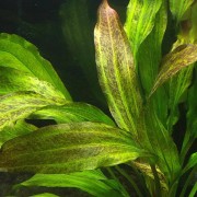 温蒂椒草的突变品种,诞生于新加坡水草养殖场。淡黄绿色叶片上,绿色叶脉十分突出,叶片下方仿佛浸润着一片棕色,颜色对比鲜艳,风格独特。养殖条件与温蒂椒草相同,不过强光下更容易欣赏到与众不同的色彩。不仅适合搭配绿色浓郁的蕨类水草,与禾叶挖耳草等色彩明亮的前景草搭配起来效果也不错。