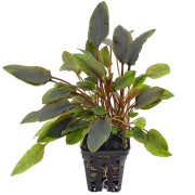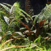 圆叶,互生,强光下叶色会变成浓郁的胭脂红,非常有个性。在红色系水草中,有一种独特的素雅感。与沉木搭配起来效果卓群,最好再配上一些椒草,造型会十分优美。此外,与泰国水剑等亮绿色的水草搭配起来也毫不突兀。养殖的关键在于使植株整体充分暴露在强光下,并添加CO2。