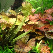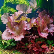 是近几年才被利用的水草。挺水性植物,水上草与水中草同型。水上草具有圆形对生叶,叶色翠绿,能在湿地上匍匐生长,生长速度中等。用作前景草栽培,让它蔓延生长成一大片,如绿地毯一般覆盖着底床表面,相当吸引人。因此已逐渐成为水草造景的新宠。由于它实在太小,种植时有些困难,栽植之后很容易因浮力或鱼的扰动而漂浮起来,只有扎根后,才能顺利生长。因植根浅,不容易直接吸收到根肥的养分,根肥和基肥都派不上用场,因此要施用液肥。在强光下生长旺盛,喜欢弱酸性软水,用作造景时,为了提高生长速度,人工输入二氧化碳是必需的。