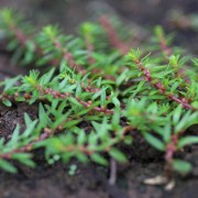 大叶珍珠草是双子叶植物,挺水性植物,外观类似珍珠草,但体型比珍珠草大。水上草的茎较细,圆形对生叶,几乎无叶柄,叶色翠绿。开花时,叶腋上有不明显的白花。在水质优良的草缸中栽培,水上叶可以很快适应水中环境而逐渐蜕变為水中叶。水中叶的叶子薄而略有皱曲状。在光照不足时,成长缓慢,茎叶垂软。水温太高也会使叶形改变,且易掉叶。栽培上比较困难,需较多二氧化碳及光照,否则下方的叶子容易黄化。茎直立或向斜上方生长。强光下会匍匐生长,但很快就改为向上伸展。叶色为明亮的黄绿色,十分鲜艳,即使在草缸内色彩也十分醒目,人气极高。喜弱酸性水质,比起大矶砂来,底床材料更适合选用水草泥。如果光线强度不够,茎的下方容易打蔫,并漂浮到水面上,一定要保持强光照射并添加CO。丛生姿态非常优美。