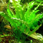 叶色深绿,整体高度15~25cm,叶长20cm,宽0.7~1.5cm,叶片呈剧烈的波浪状起伏,很容易令人联想到大喷泉或椒草类水草。形态奇特,与马达加斯加网草同属奇珍水草。养殖难度较大,但颇具挑战价值。应保持中性至碱性水质,使用大矶砂类型的底床材料,注意清洁。